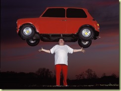 Bom, O inglês John Evans conseguiu equilibrar um carro de 159,6 kg em sua cabeça durante 33 segundos